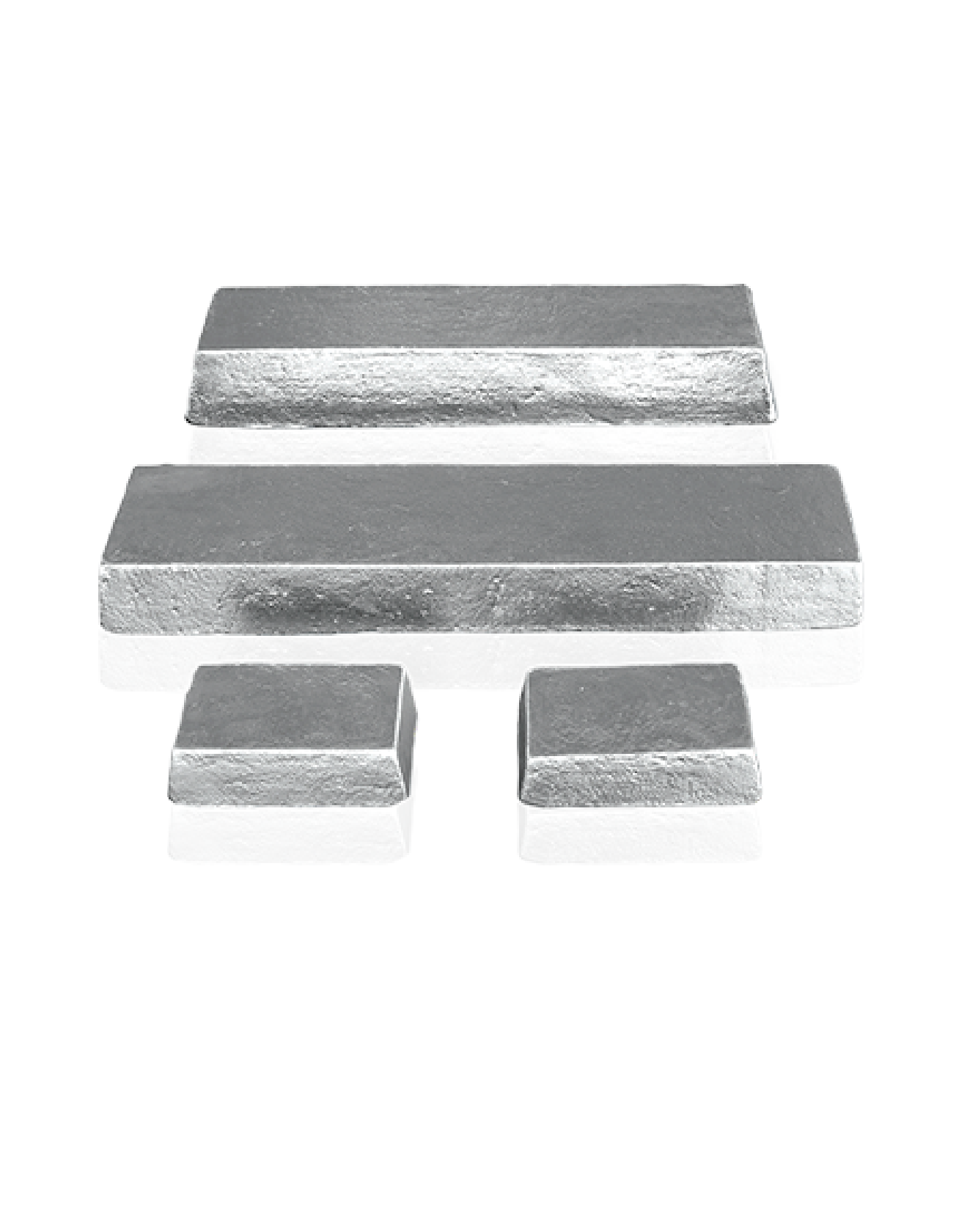 Sizes of Shaped Ingots: 100±10g、 200±15g、 300±25g、 500±50g、 1200±100g